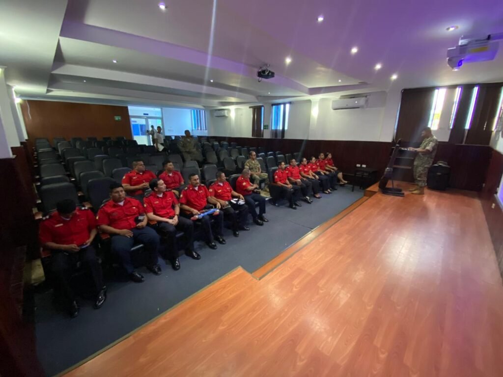 El Benemérito Cuerpo de Bomberos del Cantón Paján llevo a cabo una capacitación avanzada en la escuela de Grumetes » CONTRAMAESTRE JUAN SUÁREZ» en el Cantón de Santa Elena, orientado al fortalecimiento de las competencias tácticas y operativas del personal de las filas bomberil en: contención , supresión de incendios en entornos de infraestructuras estratégicas bajo el manual de marinos.
