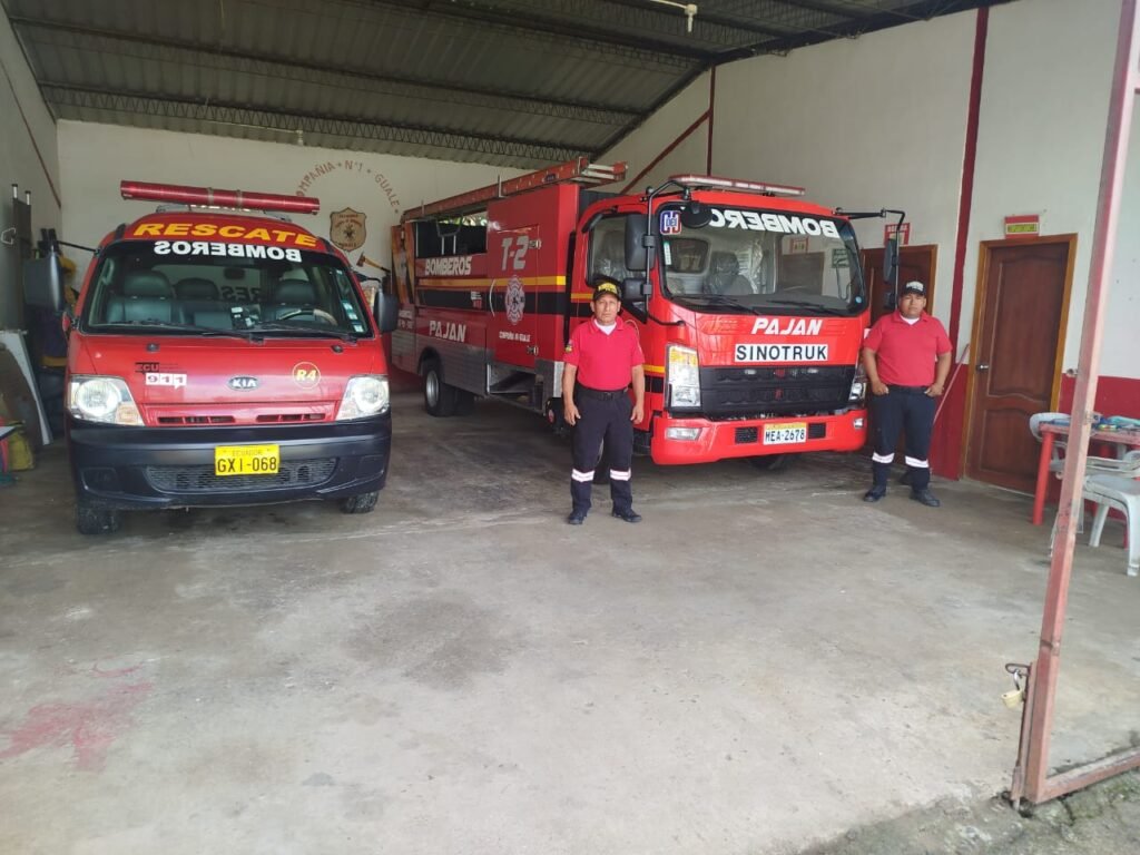 COMPAÑIA DE BOMBEROS DE LA PARROQUIA GUALE CON SU PERSONAL Y VEHICULOS OPERATIVOS.