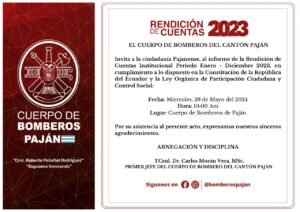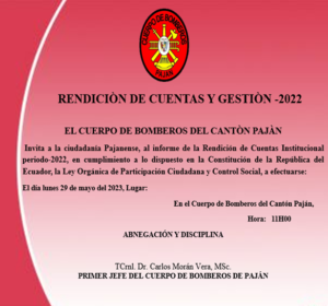 2) RENDICIÓN  DE CUENTAS  REALIZADA EN EL CUERPO DE BOMBEROS DEL CANTÓN PAJÁN POR PARTE DEL; TCrnl. Dr. CARLOS MORÁN VERA, Msc.