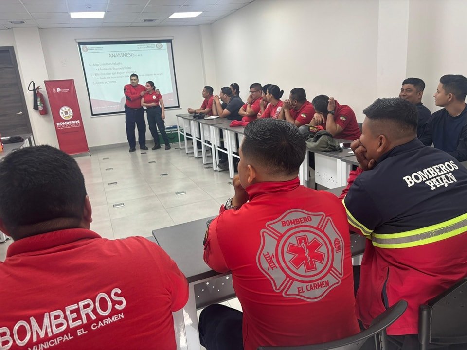 on el objetivo de fortalecer las capacidades operativas en situaciones críticas, el Benemérito Cuerpo de Bomberos Portoviejo (BCBP) lidera una capacitación especializada en “Atención del parto de emergencia”, dirigida a personal de los cuerpos de bomberos de diez cantones de Manabí.
